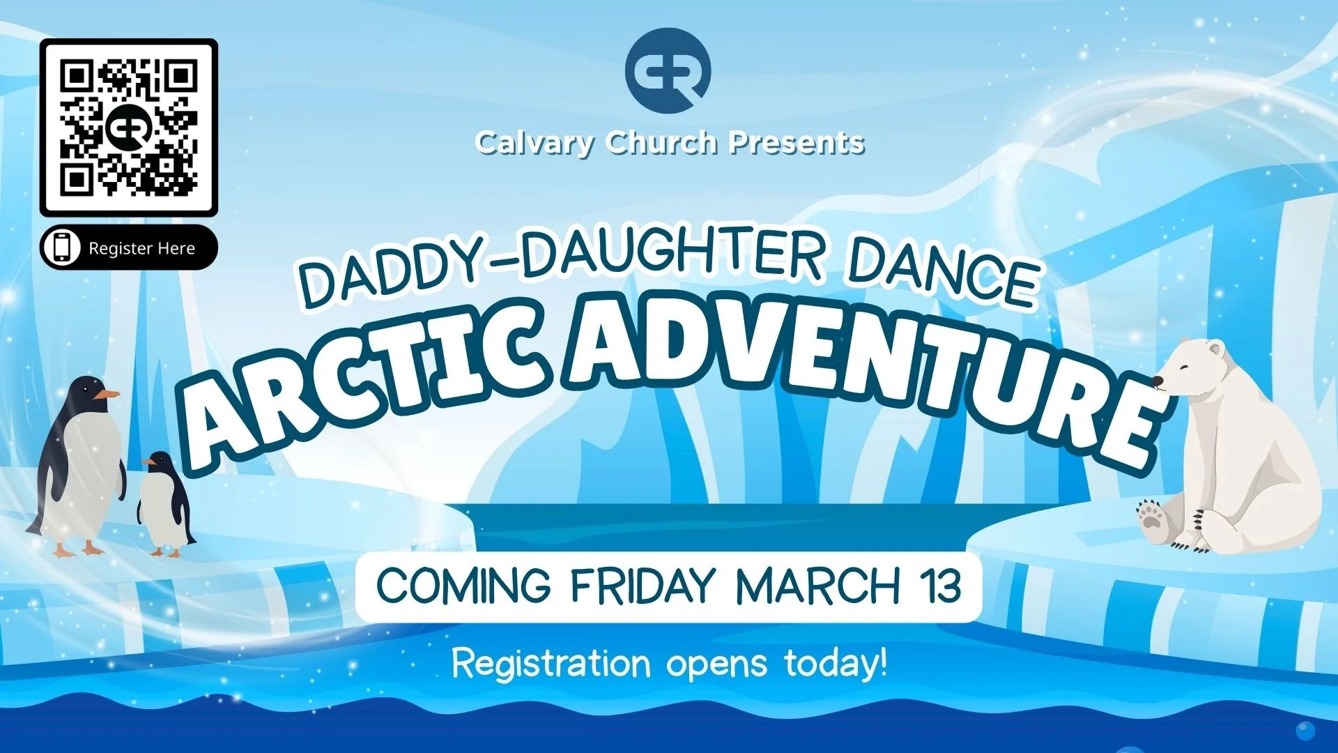 Our Daddy-Daughter Dance is on March 13th, 2026 from 6-8pm! Dads, grandpas, uncles and other father-figures are invited to bring their girl(s) (Kindergarten - 5th Grade) for a night of fun on An Arctic Adventure!