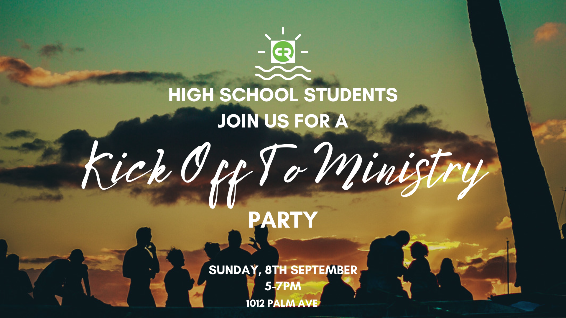 All 9th-12th Grade Students are invited to join us for the High School Kickoff party on Sunday, September 8th from 5-7pm at 1012 Palm Ave.