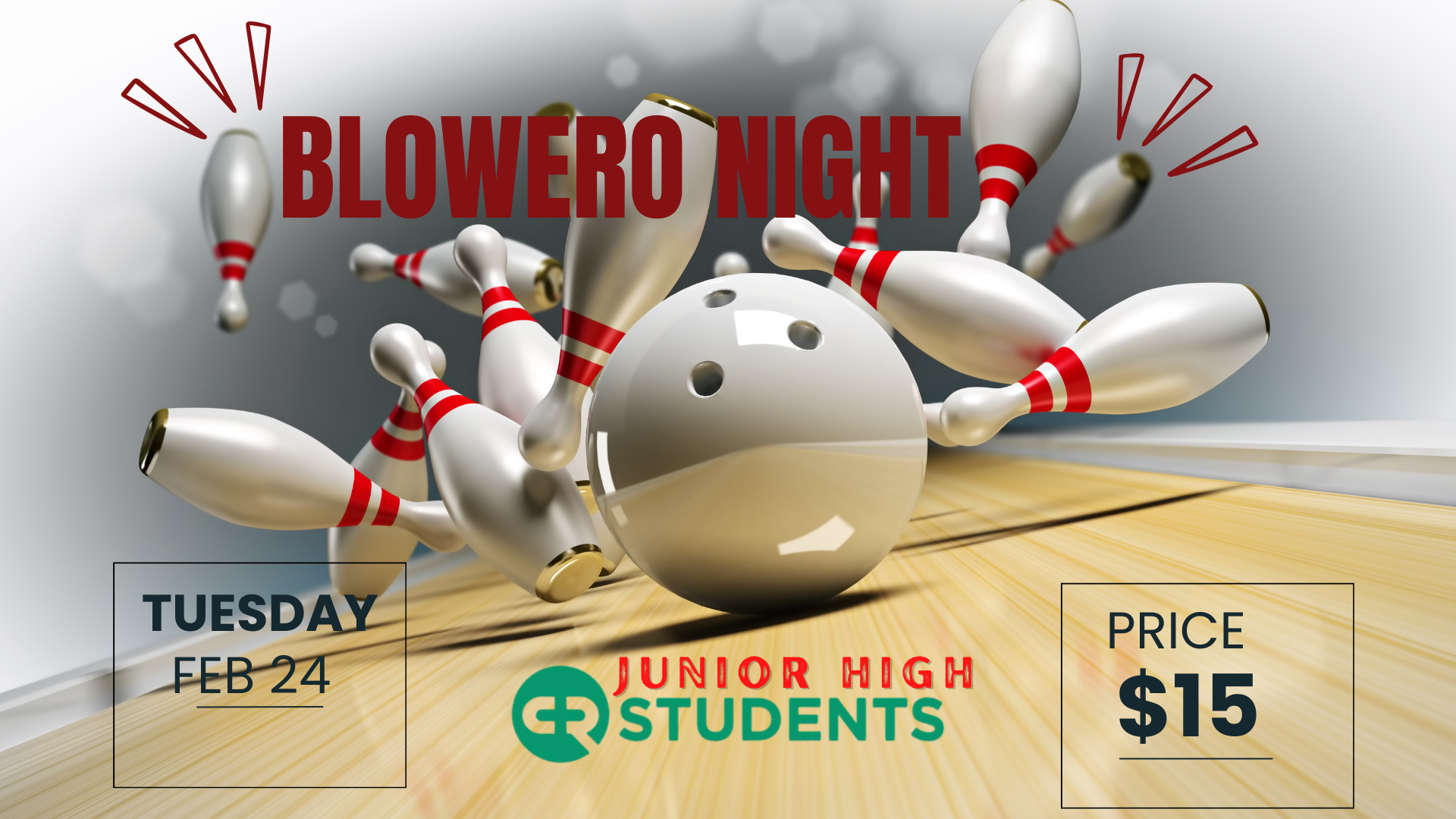 Jr High students are invited to a night of fun bowling at Bowlero in Manteca! Cost is $15/student. Sign up today!