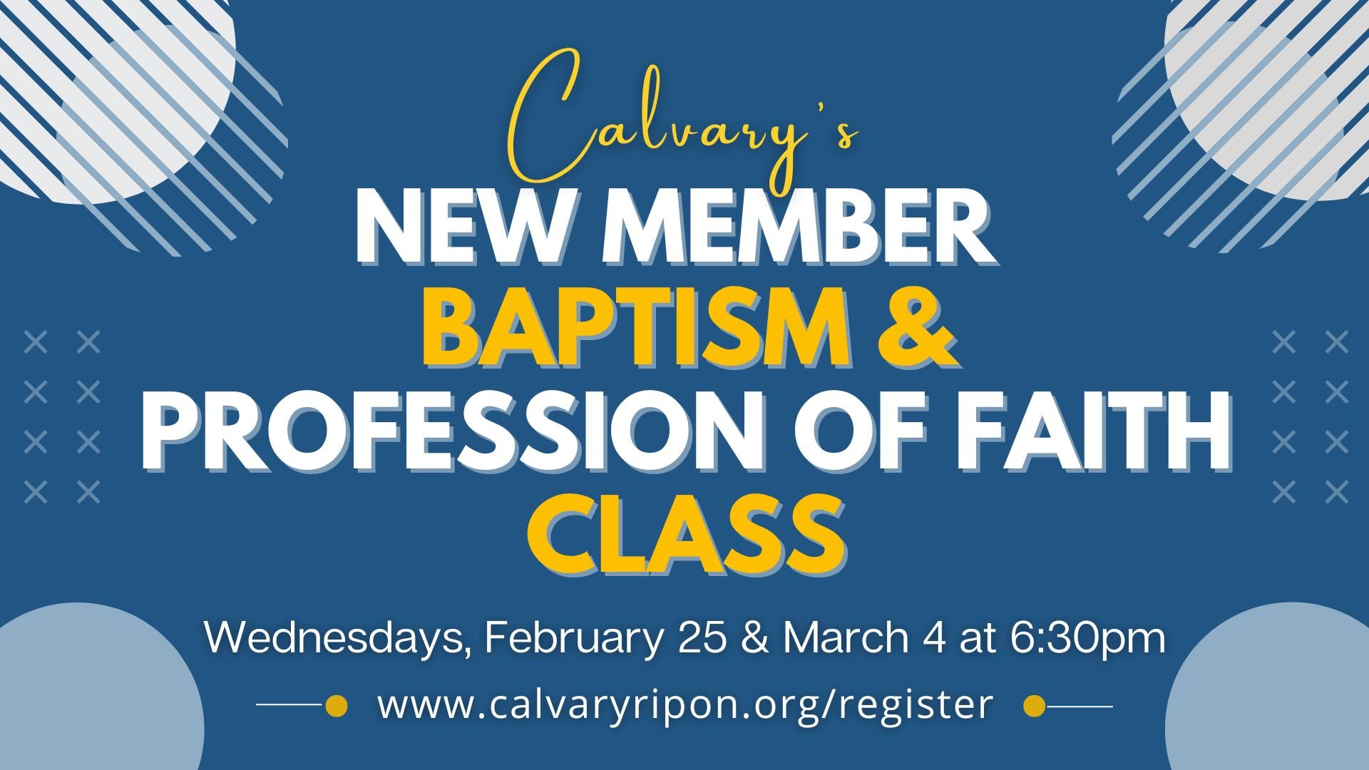 Are you ready to take the next step in your journey of faith at Calvary Church? This is the place to do that! Join us for a two-part session where you get to know us and connect with others! Wednesdays 2/25 & 3/4.