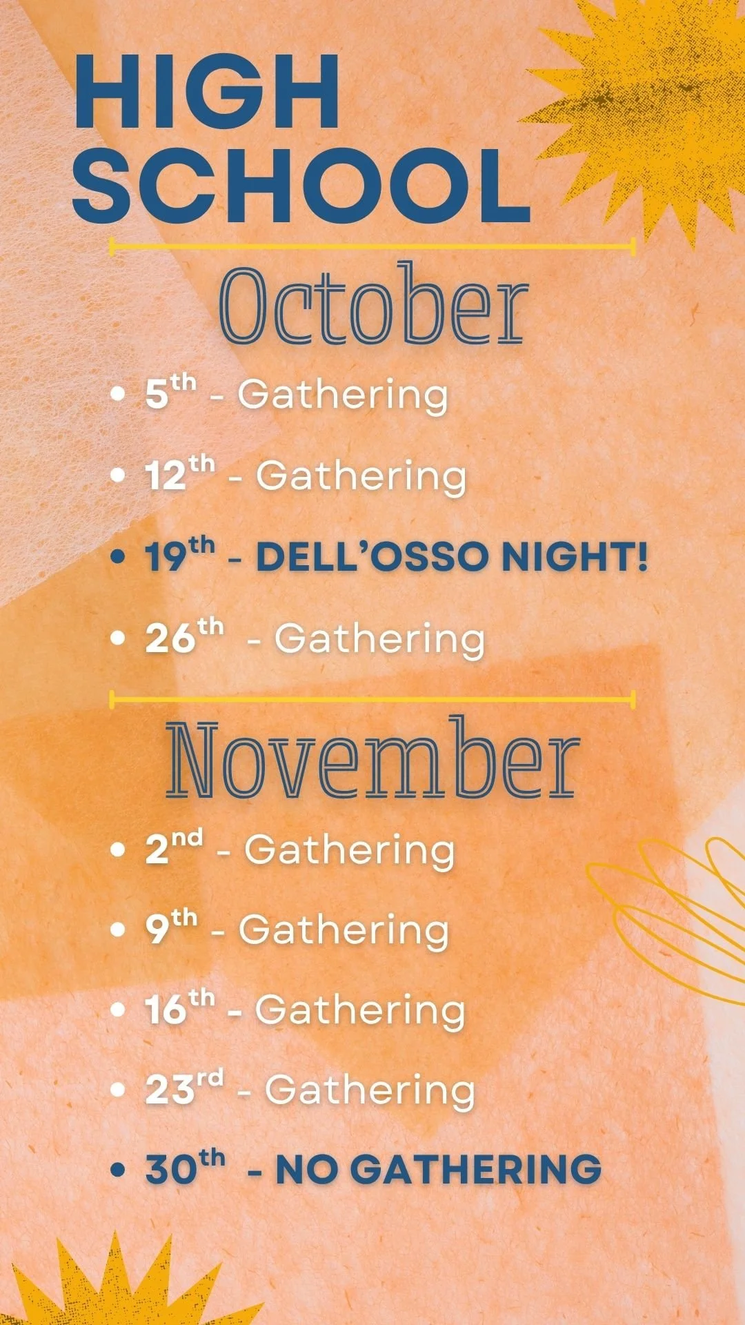Don’t miss the Dell’Osso park fun night on October 14th! We will leave campus together at 5:45pm and return by 8:15pm. Cost is $25/student for park entrance and one round of pumpkin shooters. There are limited spots available, so sign up HERE today!