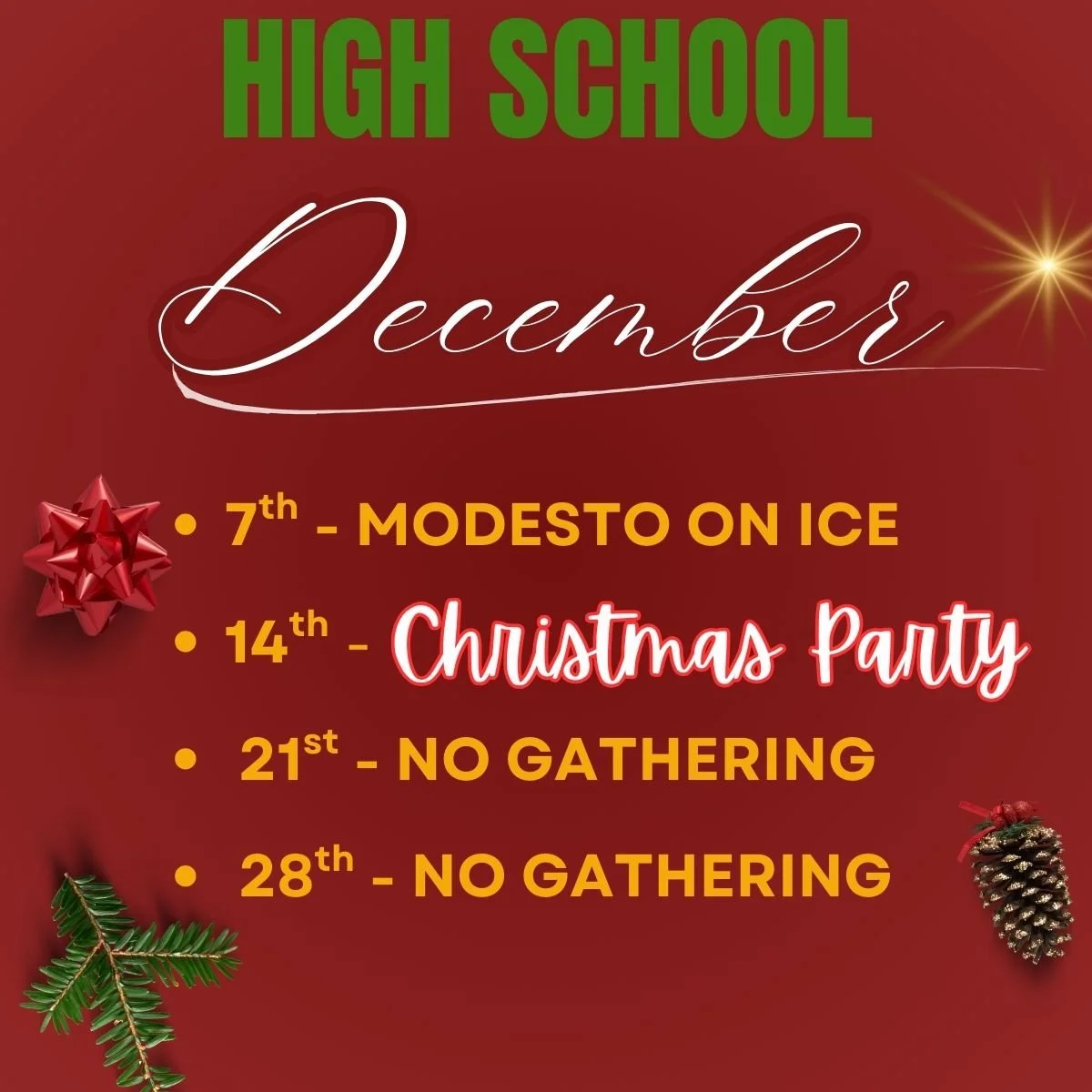 Calvary’s Junior High Group (6th - 8th Grade Students) will be on Christmas Break through January!