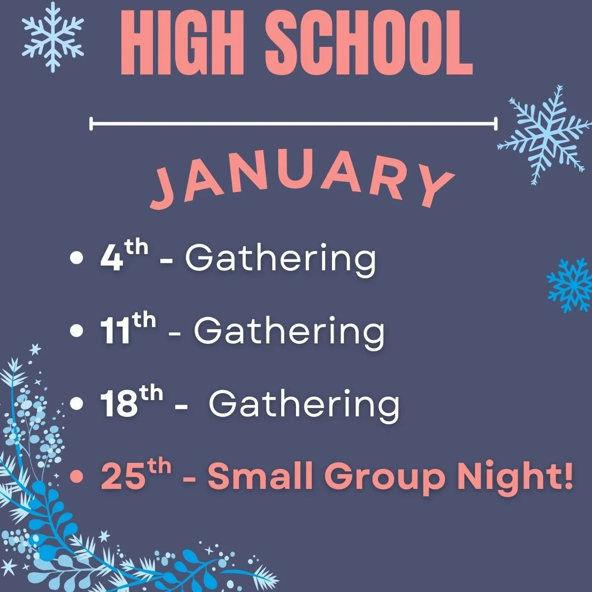 Calvary’s High School Group (9th - 12th Grade Students) will be on Christmas Break through January!